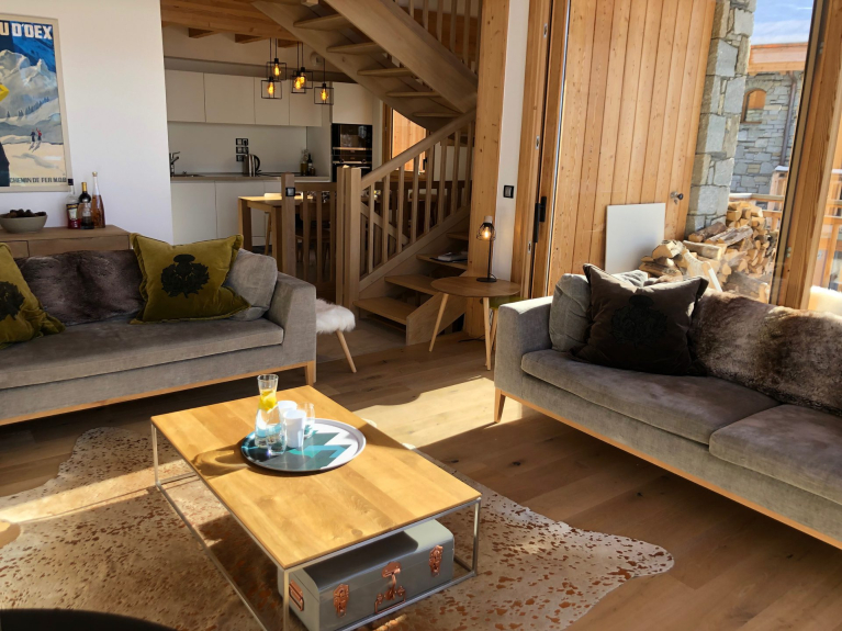 Chalet RETROUVAILLES. Ai piedi delle piste, questo comodo chalet di 90m² di recente costruzione (8 posti letto), decorato con calore, vi accoglie con amici o in famiglia.