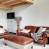 Soggiorno con televisione e stufa a legna. Si apre su una terrazza di 15m².