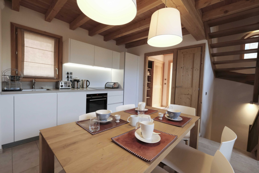 Cucina aperta alla sala da pranzo.