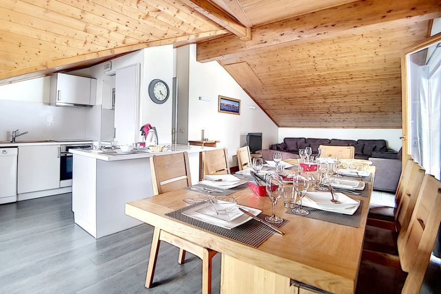 Bellissimo e spazioso appartamento di 4 stanze di 130 m² per 10 persone. Si trova al 3° piano (ultimo piano) della residenza e ha due balconi a sud e a est. (Cristaux 2)