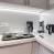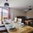 Cucina aperta attrezzata con 4 piastre a induzione, frigorifero, forno, microonde, lavastoviglie.