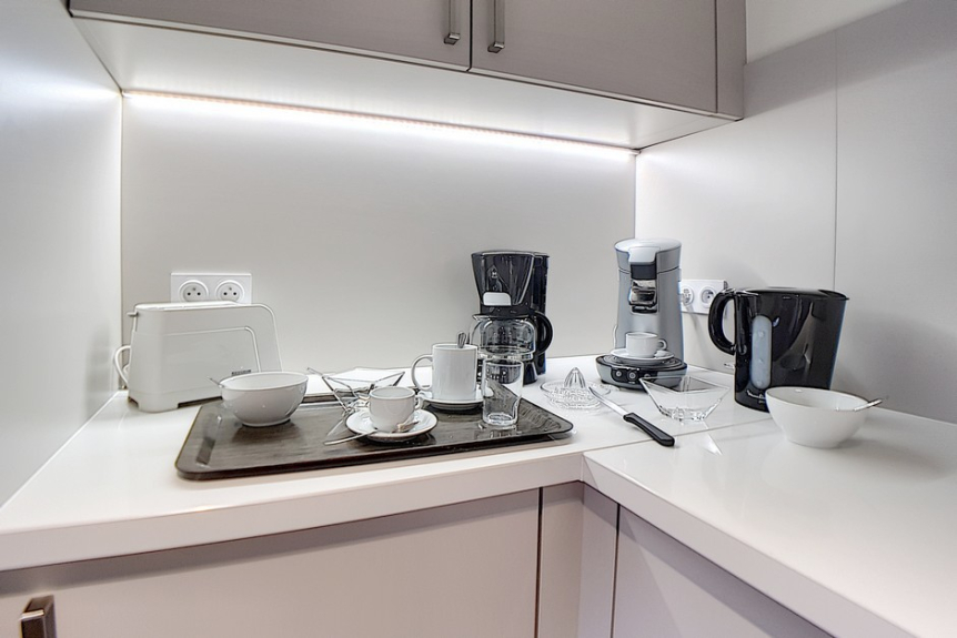 Macchina da caffè Senseo e tradizionale, bollitore e tostapane.