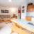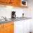 Cucina: piano cottura elettrico, microonde, frigorifero, lavastoviglie e tutte le stoviglie e posate.