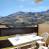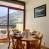 Sala da pranzo aperta alla cucina e al balcone con superba vista sulle montagne.