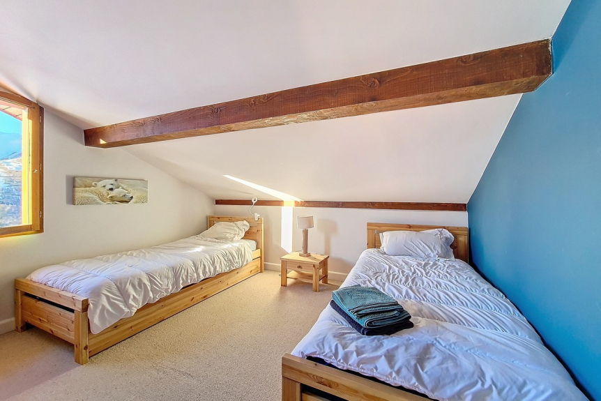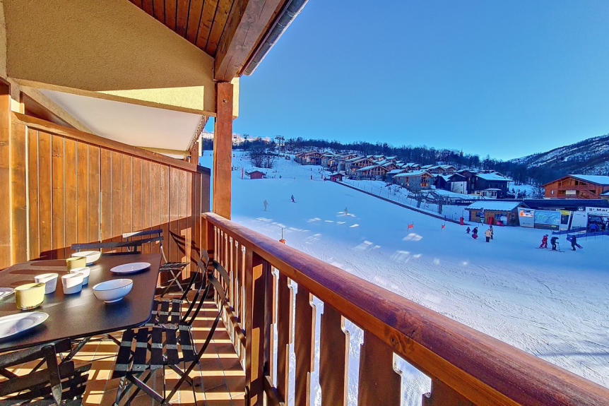 Si trova al 4° piano (senza ascensore) e ha un balcone esposto a sud con vista sulle piste.