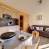 Cucina attrezzata con 2 piastre elettriche, lavastoviglie, microonde grill, frigorifero, bollitore, macchina da caffè Senseo e tostapane.