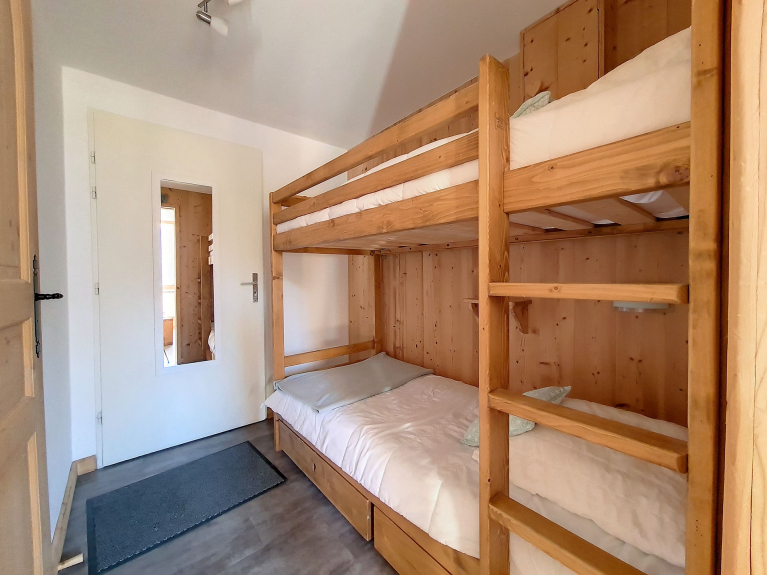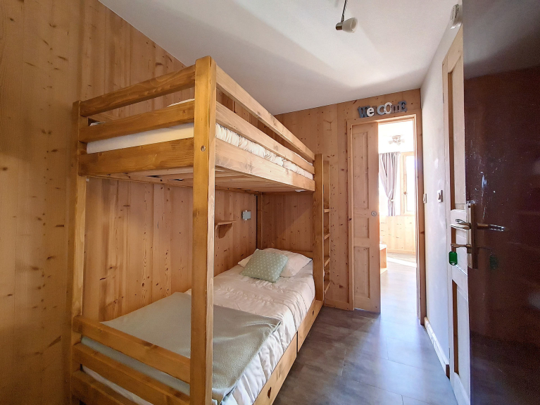 Angolo montagna (ingresso separato dal soggiorno da una porta scorrevole): 2 letti a castello singoli.