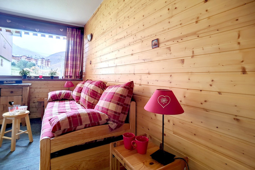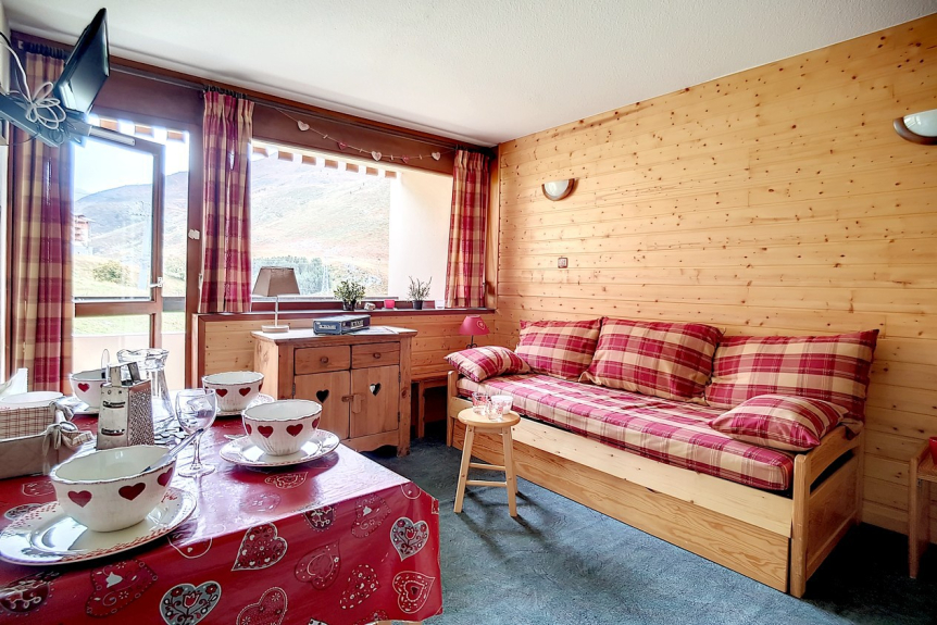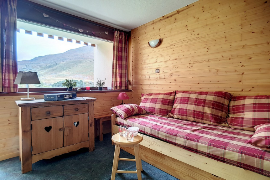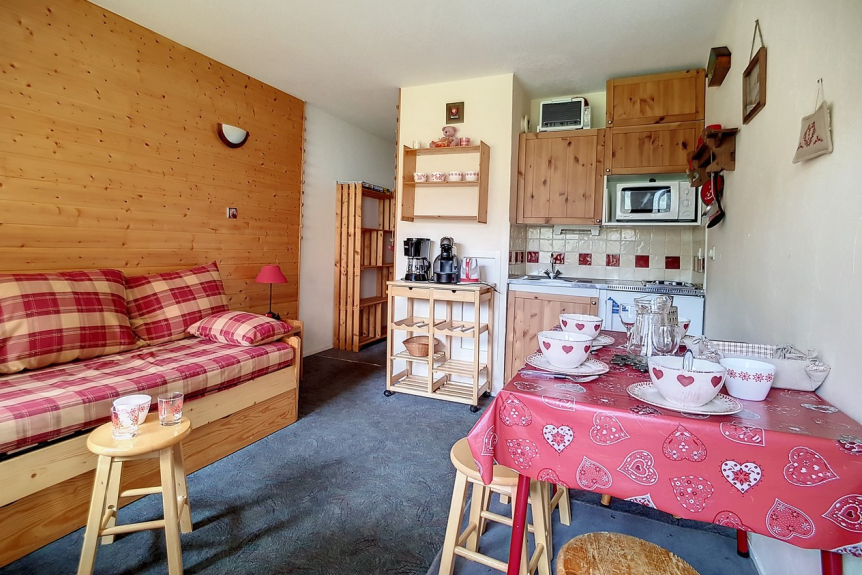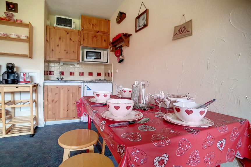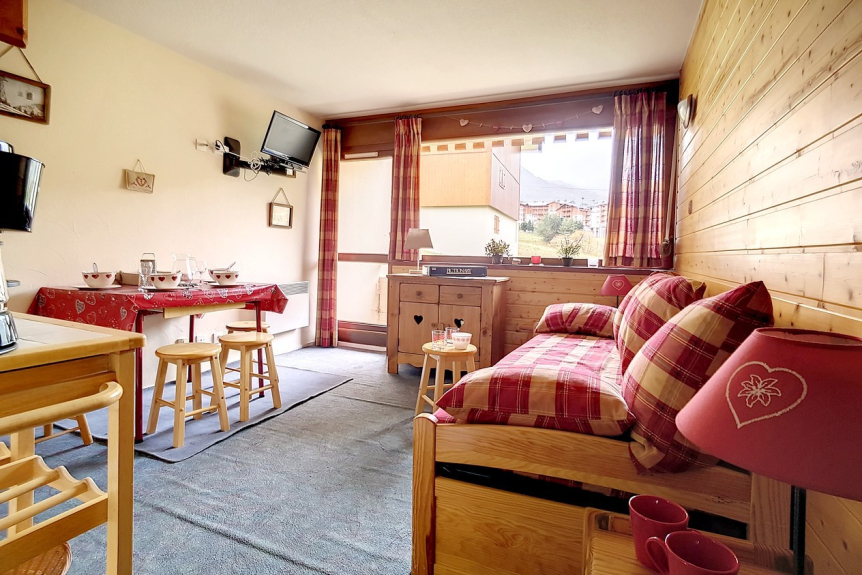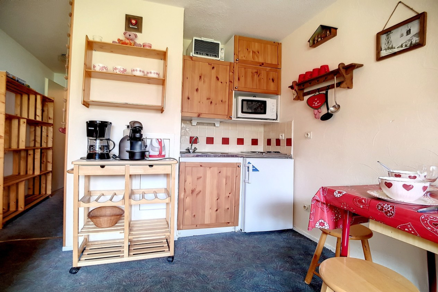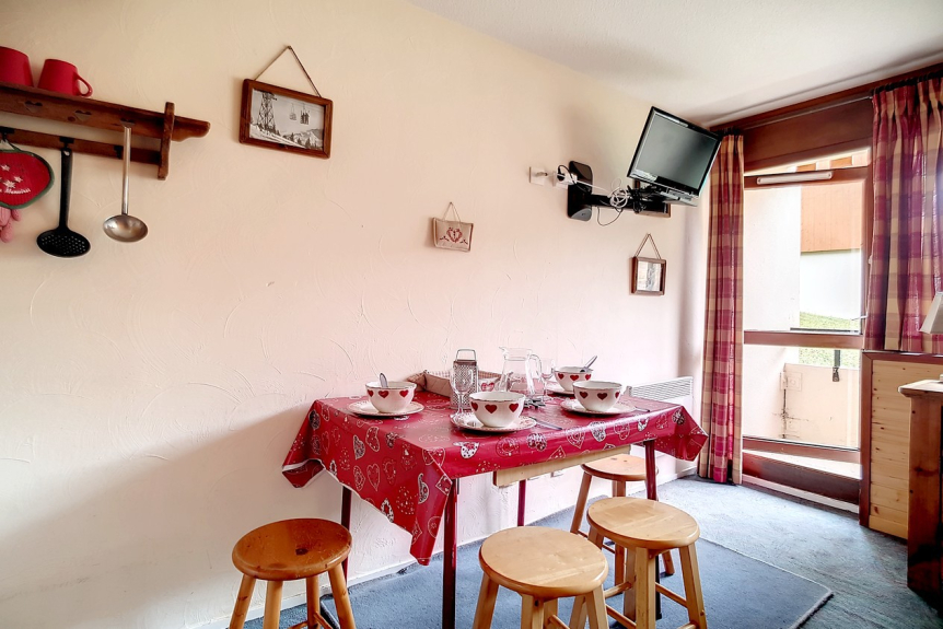 Cabina studio di 24m² per 4 persone, situata al livello - 2 dell'edificio, con un balcone esposto a sud.