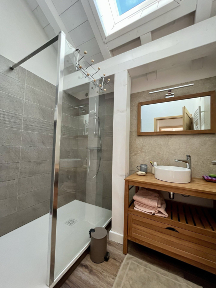 Al primo piano, troverete una prima camera da letto con un letto matrimoniale di 140 cm con un cassetto e un letto singolo di 90 cm così come un cassettone e dei comodini, una seconda camera da letto con un letto matrimoniale di 140 cm con un cassetto e un letto singolo di 90 cm e dei comodini, un'ultima camera da letto con un letto matrimoniale di 140 cm con un cassetto, uno spogliatoio e dei comodini, un bagno con una doccia e un lavandino e un WC separato. Wifi, pulizia alla fine del vostro soggiorno e biancheria sono inclusi nel prezzo di affitto.