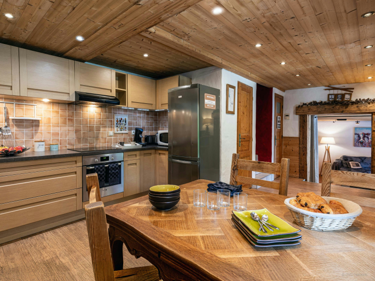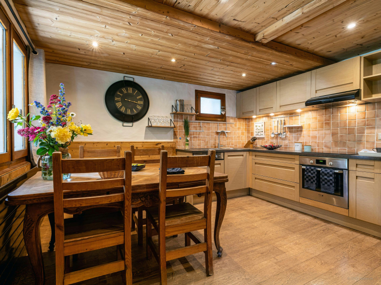 La grande attenzione ai dettagli nel design interno rende Le Petit Mazot un luogo unico e caldo per rilassarsi. La cucina è particolarmente ben attrezzata, con tutti gli utensili per preparare pasti deliziosi.