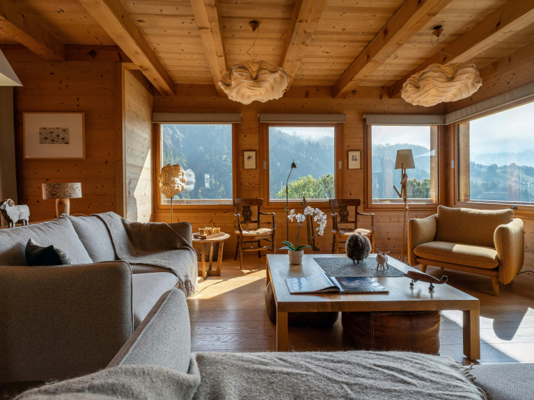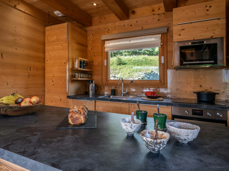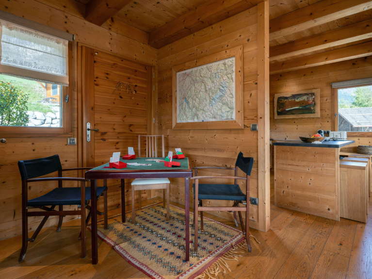 Costruito su tre livelli, questo nu e funzionale chalet esposto a sud-est può ospitare 12 persone (massimo 8 adulti).