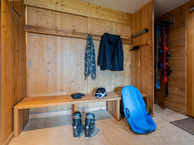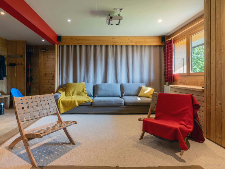 Il livello inferiore è dedicato agli ospiti più giovani, con una camera da letto con due letti a castello, un bagno con doccia, una toilette, un home cinema (BENQ W1090 di ultima generazione - 3D possibile con occhiali 3D - grande schermo) e una sala giochi. C'è anche una lavanderia e una zona di deposito, specialmente per riporre le vostre attrezzature.