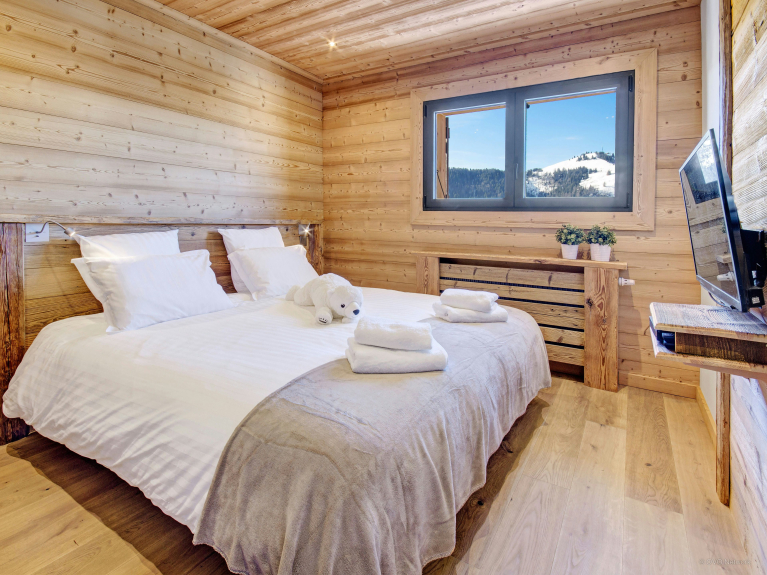 Ci sono due terrazze: una nella parte anteriore dello chalet, che offre una vista superba sui massicci Beauregard e Etale, e una sul retro, dove si possono gustare pasti all'aperto o semplicemente prendere il sole. Il soggiorno ha due zone: un salotto con divani, una TV a schermo piatto e una libreria, e un angolo accogliente per sedersi accanto al camino. La vista da questa stanza è assolutamente stupefacente!