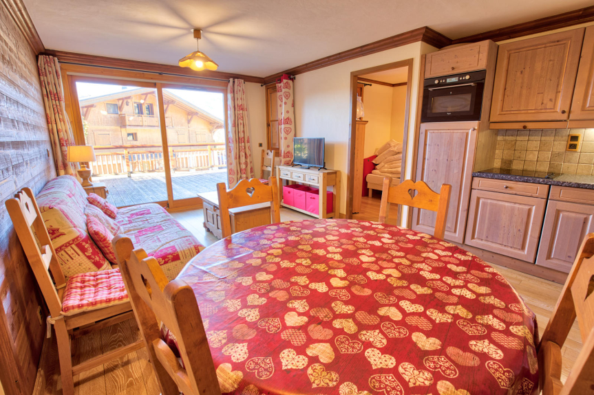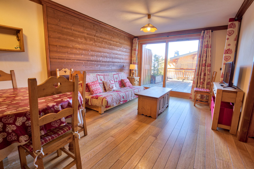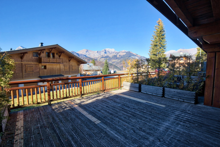 In una zona affascinante del villaggio, vicino alle piste da sci, accogliente appartamento di 50m² al piano terra con una terrazza di 30m² esposta a sud-ovest che offre una bella vista sul Mont Charvin e la valle.