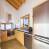 Cucina completamente attrezzata: piano cottura a gas, frigorifero e freezer, lavastoviglie, forno, microonde.