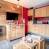Cucina attrezzata con 2 piastre in ceramica, frigorifero, microonde combinato, bollitore, macchina per il caffè, macchina per il caffè nespresso e tostapane.
