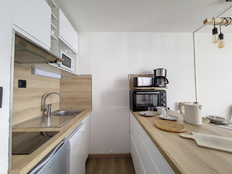 Cucina: 2 piastre, frigorifero, mini forno, microonde, lavastoviglie, macchina da caffè, tostapane e bollitore.