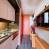 Cucina a incasso con 2 piastre, forno a microonde, frigorifero, tostapane, bollitore e macchina per il caffè.