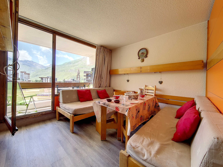 Studio di 24 m², per 4 persone. Si trova al terzo piano con un ascensore e un balcone esposto a sud.