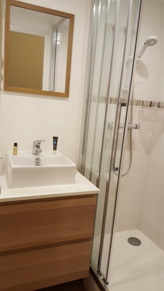 Al piano terra, un ampio ingresso permette di lasciare tutta l'attrezzatura da sci (cappotti, tute, caschi...). La camera da letto ha un letto matrimoniale (160x200) (abbastanza grande per aggiungere una culla). Il bagno è dotato di vasca, doppio lavabo, asciugamano e asciugacapelli. Il WC è separato.