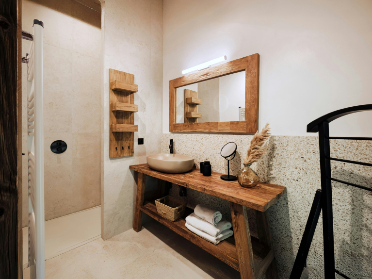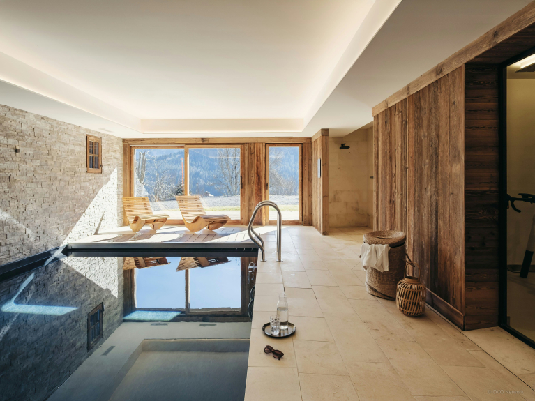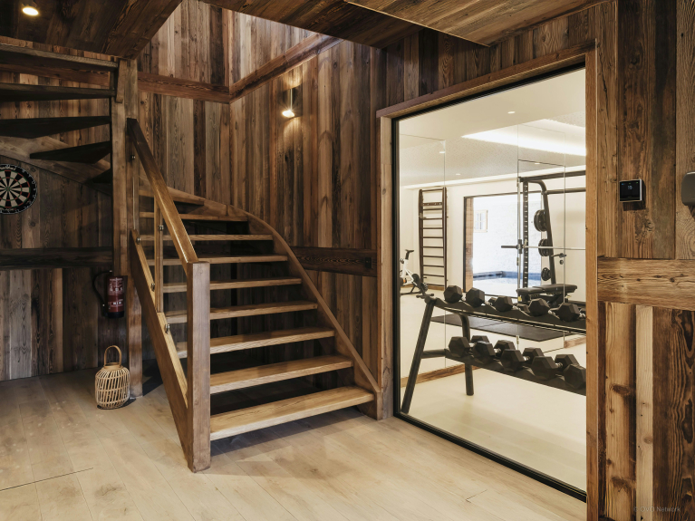 Il punto di forza di questo sublime chalet è senza dubbio l'area benessere situata al livello del giardino. Include una palestra con diverse attrezzature, una doccia, senza dimenticare la magnifica piscina coperta con nuoto controcorrente. Le finestre si aprono su una terrazza. Il luogo ideale per rilassarsi e ricaricare le batterie.