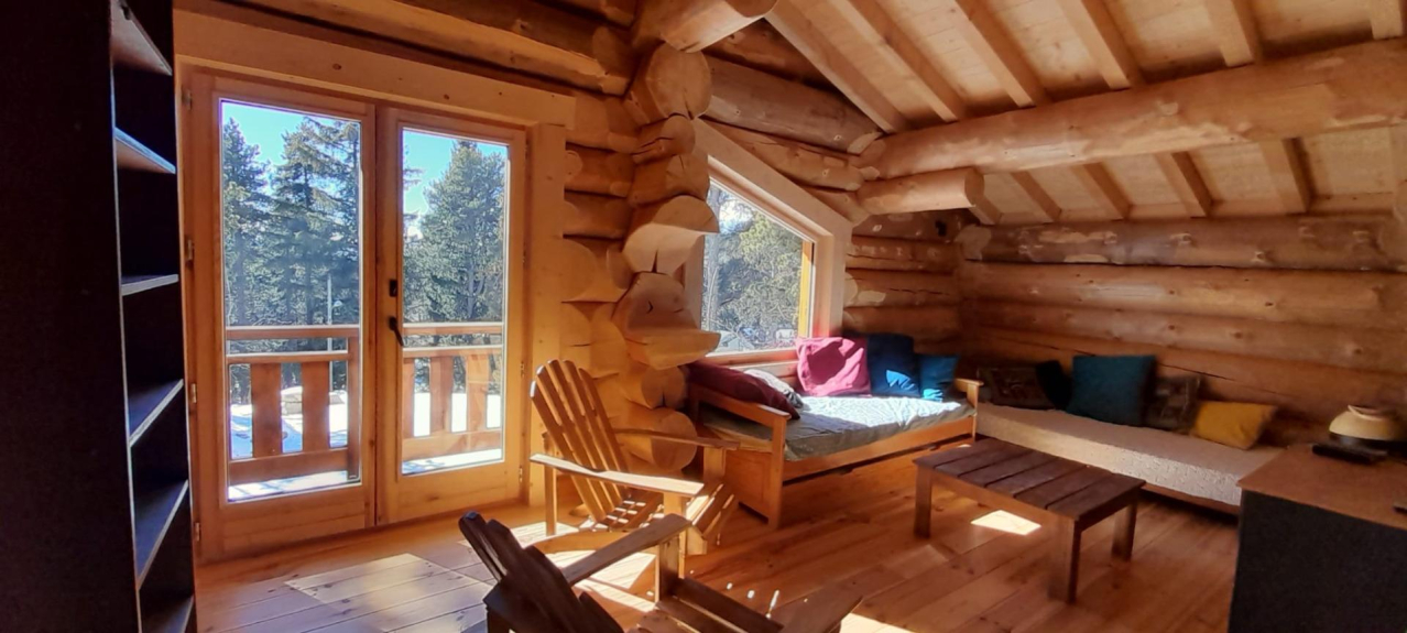 Nu chalet di alta gamma in tronchi massicci (fustes), superficie 270 m2, 14-16 persone (capacità 18 max).