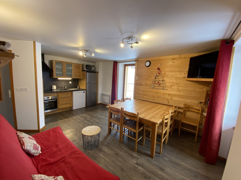 Situato al 2° piano dello chalet, questo incantevole appartamento di 65 m² può ospitare 10 persone, con una grande terrazza esposta a sud che offre una vista eccezionale sulle nostre montagne.