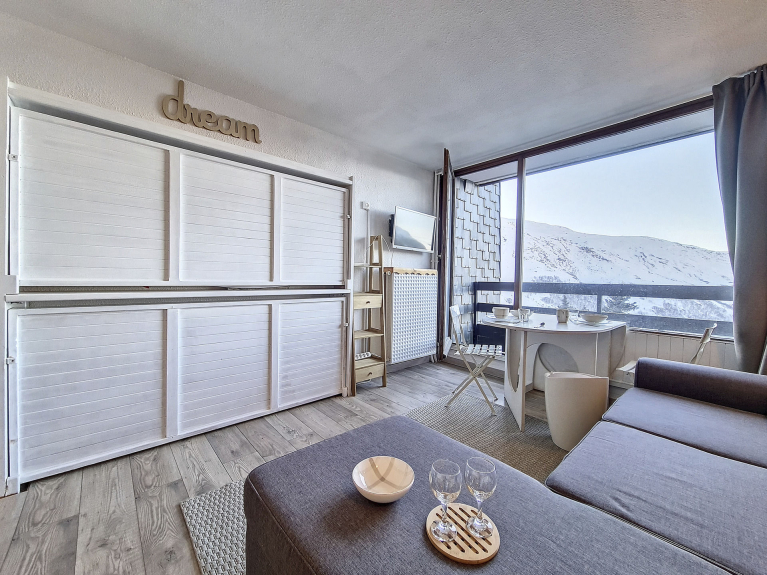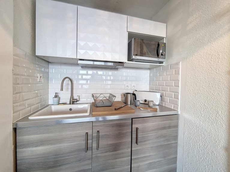 Monolocale completamente ristrutturato nel 2023 di 17 m² per 3 persone. Ha un balcone a NORD-OVEST e si trova al piano terra dell'edificio.
