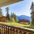 Soggiorno con divano letto 140x190cm, accesso al balcone esposto a sud. Vista sulla valle.