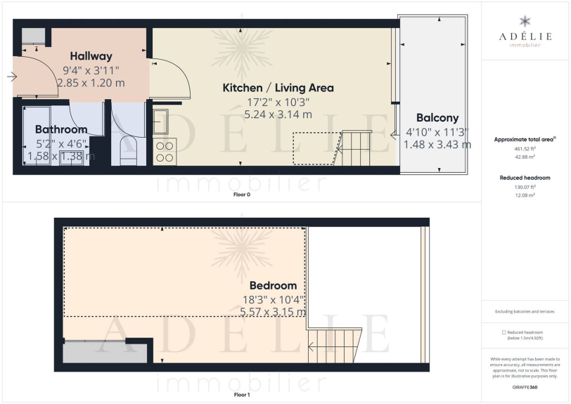 CHRA16: STUDIO E MEZZANINO 4 PERS classificato 2* di 26 m2, situato al 2° piano con balcone.
