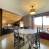 - Un bel soggiorno con cucina completamente attrezzata (frigorifero con piccolo scomparto freezer, lavastoviglie, piano cottura elettrico, cappa aspirante, forno a microonde combinato con forno) e la sua zona salotto che dà accesso a una bella terrazza.