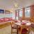 Cucina attrezzata con 2 piastre elettriche, microonde combinato, frigorifero, mini lavastoviglie, macchina per il caffè, tostapane, bollitore.