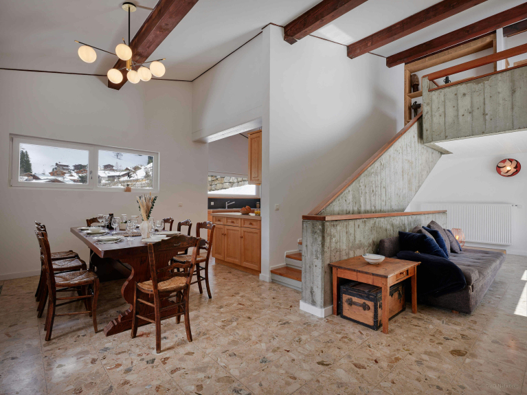 Questo spazioso chalet, particolarmente luminoso grazie alle sue numerose finestre a golfo, gode di una vista ininterrotta sul Mont Joly. Situato a soli 750 m dalla località di Les Contamines-Montjoie, può ospitare fino a 15 vacanzieri, con sei camere da letto e quattro bagni distribuiti su tre piani.