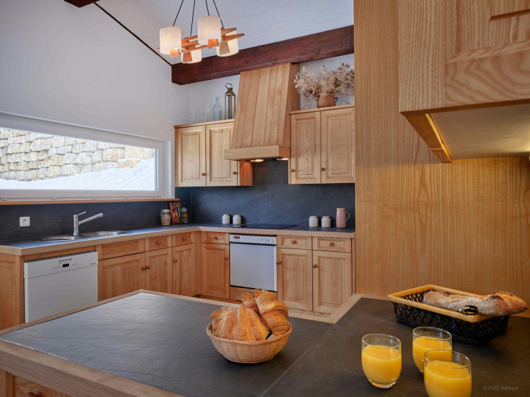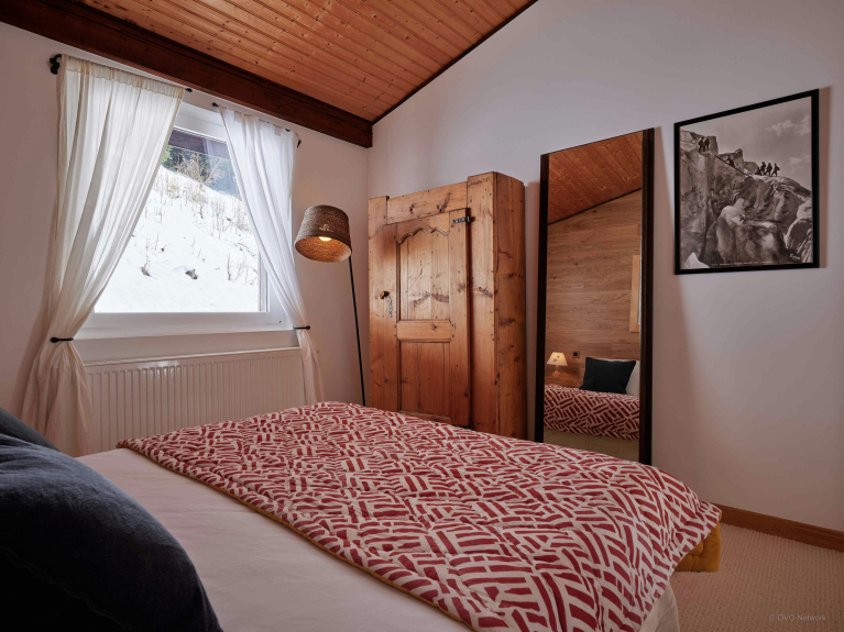 All'ingresso, un deposito sci e una toilette minimalista vi metteranno a vostro agio non appena arriverete allo chalet. Pochi gradini conducono a un appartamento indipendente, ideale per una famiglia, con soggiorno, angolo cottura, camera matrimoniale, dormitorio e bagno con doccia.