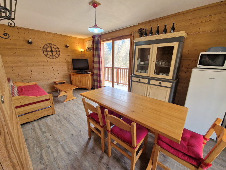 Il residence è composto da diversi chalet, ciascuno con 5-8 appartamenti, che offrono una vista ininterrotta sul massiccio della Vanoise. Gli chalet si trovano a 500 metri dal centro della località, con i suoi negozi e la partenza della gondola.