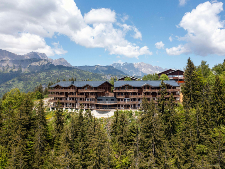 Tre balconi accessibili tramite porte-finestre ampliano lo spazio abitativo. Uno di essi è dotato di poltrone, mentre un altro invita a gustare il caffè con vista sulle montagne.