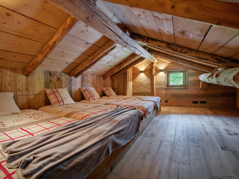 Le tre camere matrimoniali dell'appartamento sono dotate di bagno con doccia e servizi igienici separati. Il mezzanino, ideale per i bambini o gli amici, dispone di quattro letti singoli e di un ulteriore bagno con doccia e servizi igienici in fondo alle scale.