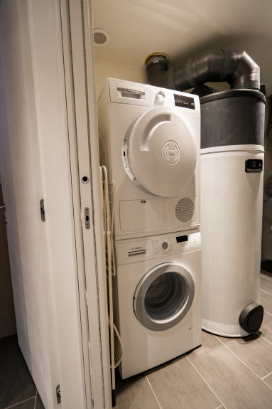 - Lavanderia con scaldabagno, lavatrice e asciugatrice