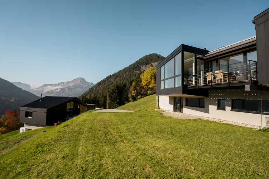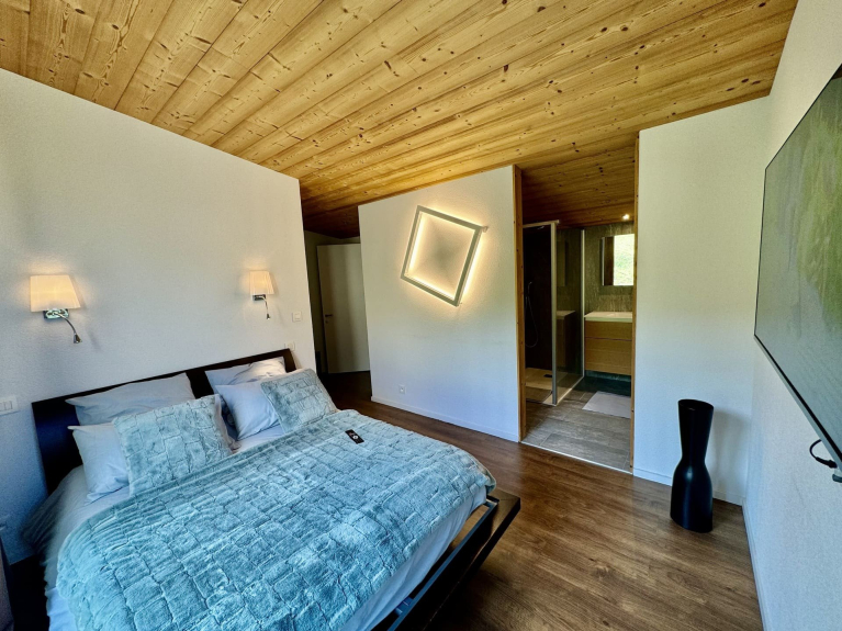 Venite a scoprire questo chalet bifamiliare progettato da un architetto in uno stile moderno e ordinato, situato in posizione ideale sulle alture del villaggio di Châtel, nel cuore del comprensorio sciistico di Portes du Soleil. La sua architettura contemporanea e le sue ampie vetrate offrono una vista panoramica eccezionale sulle montagne e sul villaggio, per una vacanza unica che unisce natura e serenità.