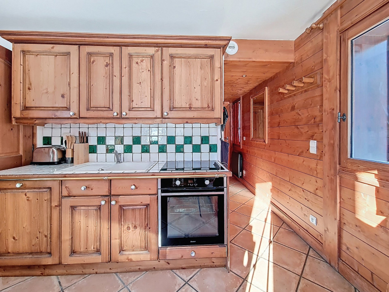 Cucina attrezzata: 3 piastre in vetroceramica, cappa aspirante, grande frigorifero e mini-forno congelatore, lavastoviglie, macchina da caffè, bollitore e tostapane.