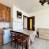 Una zona pranzo/cucina a vista dotata di frigorifero con scomparto freezer, microonde, mini-forno e piano cottura in vetroceramica.