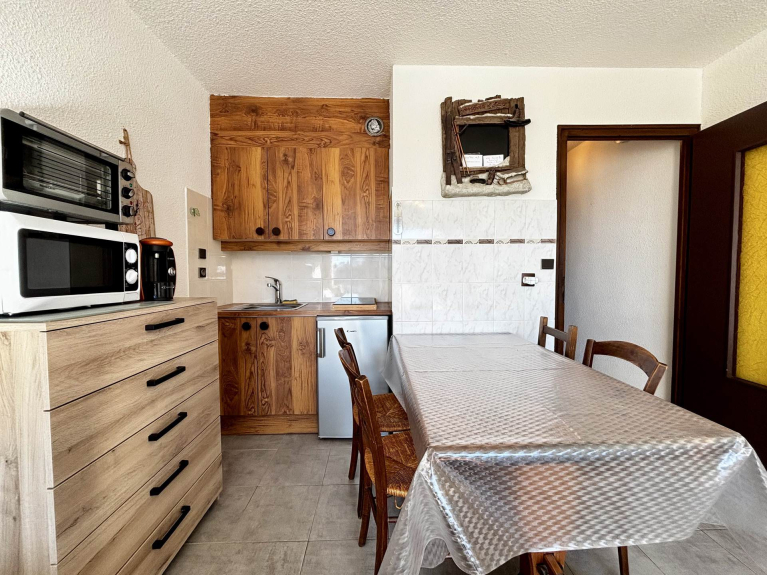 Questo monolocale di 25,04 m², situato al 6° piano, gode di una vista ininterrotta sul villaggio, sulla piscina e sul Mont Charvin. Il suo balcone esposto a sud permette di godere del sole tutto il giorno. Progettato per ospitare fino a quattro persone, offre una sistemazione confortevole e piacevole.