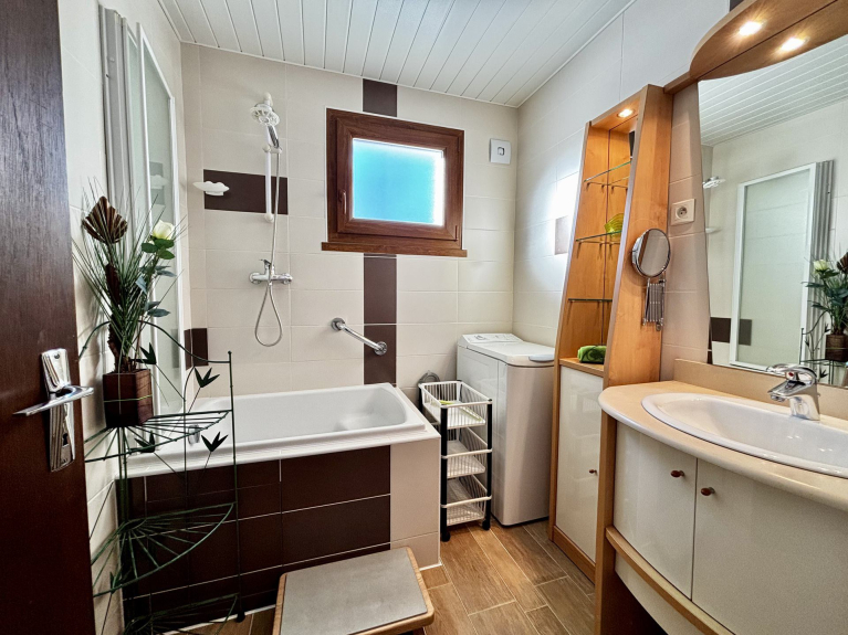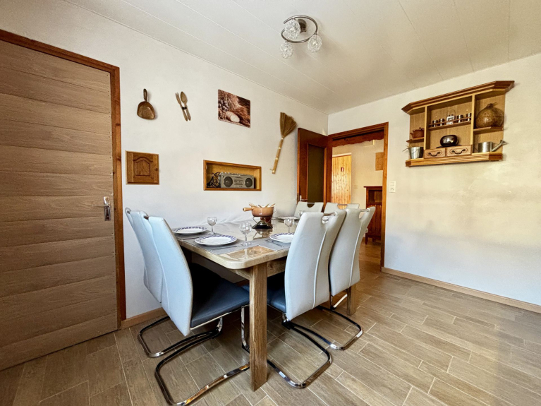 Grazioso e accogliente appartamento di circa 75 m², ideale per ospitare comodamente fino a 6 persone. Situato al livello del giardino, dispone di una terrazza esposta a sud con vista ininterrotta e di una seconda terrazza esposta a ovest con vista sul Mont Charvin.