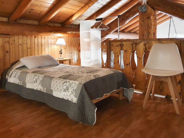 Lo chalet dispone di un grande soggiorno con un angolo cottura ben attrezzato (compreso il set per la raclette e la fonduta), un'area lounge e un grande balcone, 2 camere da letto, un mezzanino, un bagno e un WC separato.