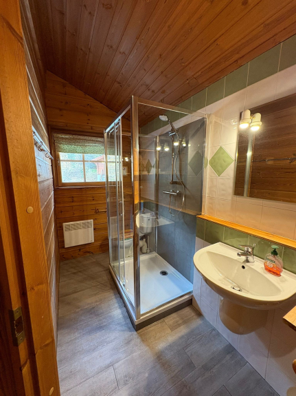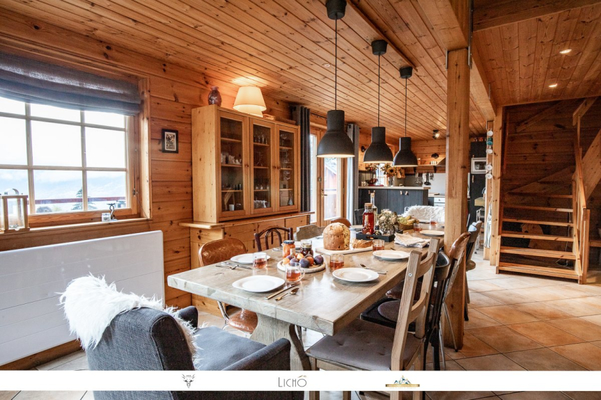 Chalet finlandais, entièrement construit en bois, décoré chaleureusement. Grand balcon expo sud et vue Vanoise. Proximité de pistes.