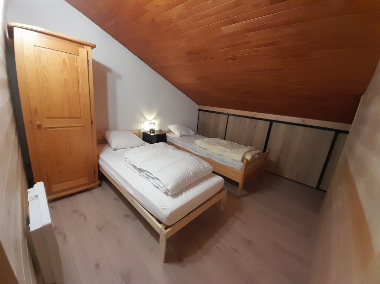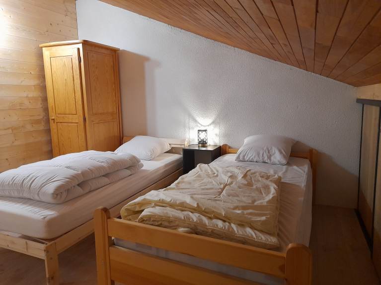 - Une chambre avec 2 lits superposés 90x200 et 1 lit tiroir 90x190 (soit 5 couchages)