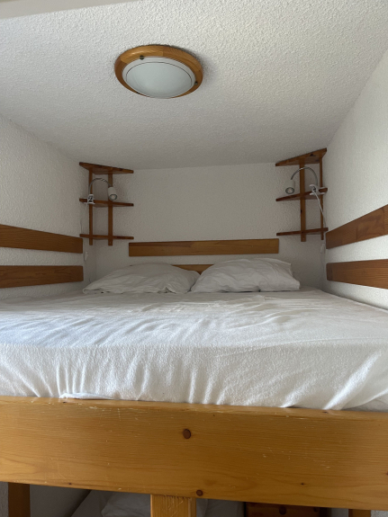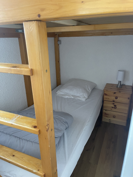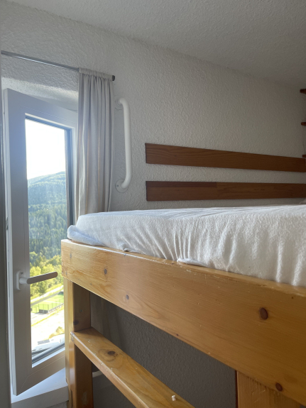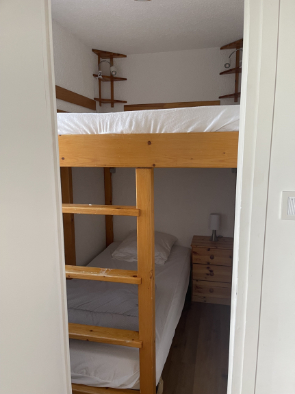 Le coin nuit avec fenêtre est équipé d'un lit mezzanine de deux places (140x190) superposé et d'un lit d'une personne (90x190). Ce coin montagne est indépendant et séparé de la pièce de vie par une porte.