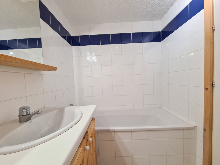 - Salle de bain avec baignoire et douche (2 lavabos)