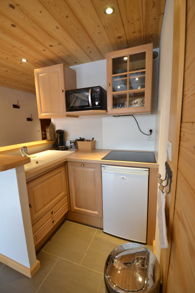 - Cuisine ouverte sur séjour : quatre plaques vitrocéramiques, lave vaisselle, combi four micro-ondes, réfrigérateur, cafetière Senseo.