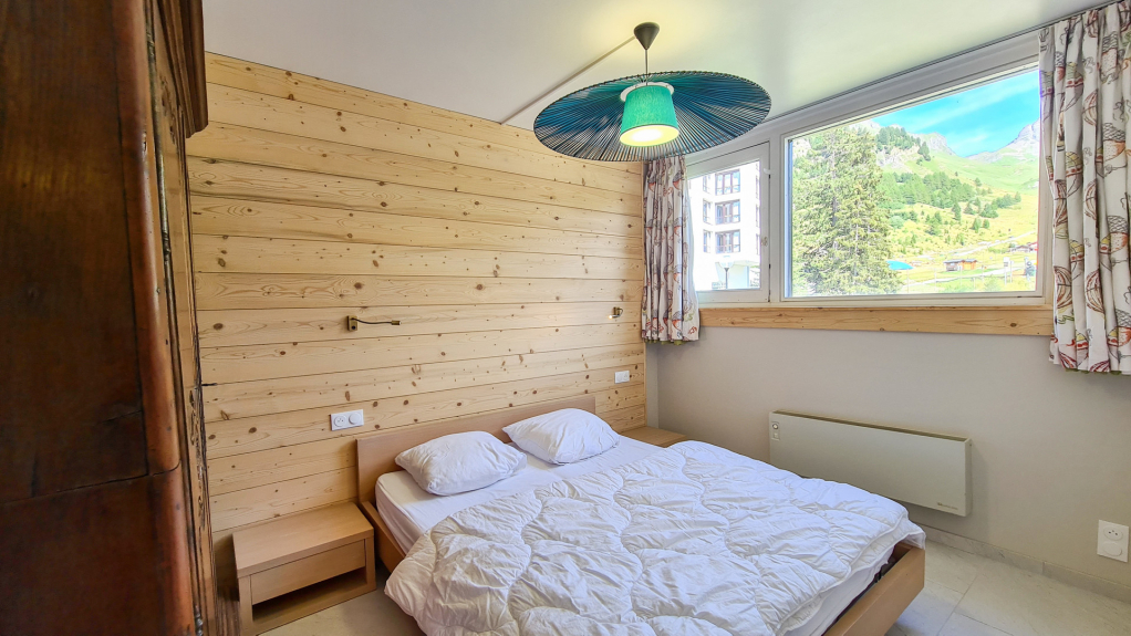 Grand balcon orienté Sud et Est .très calme. Situé au pied des pistes et du rassemblement de l'école de ski